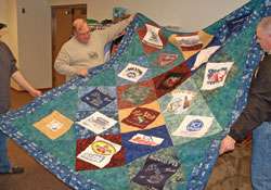 So he thought of his sister, Sheri Russel. "She's been quilting for many years and is really good at it. She can do almost anything with a needle and a sewing machine. I thought, why not give her a call and see what ideas she might have. Maybe she could make something useful out of the shirts. That would get them out of the house and save them at the same time."