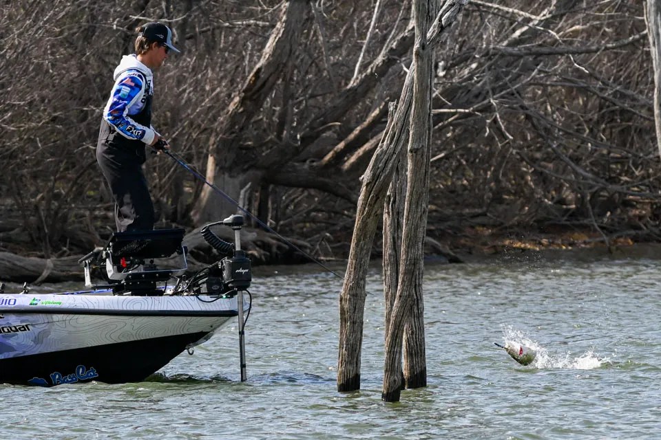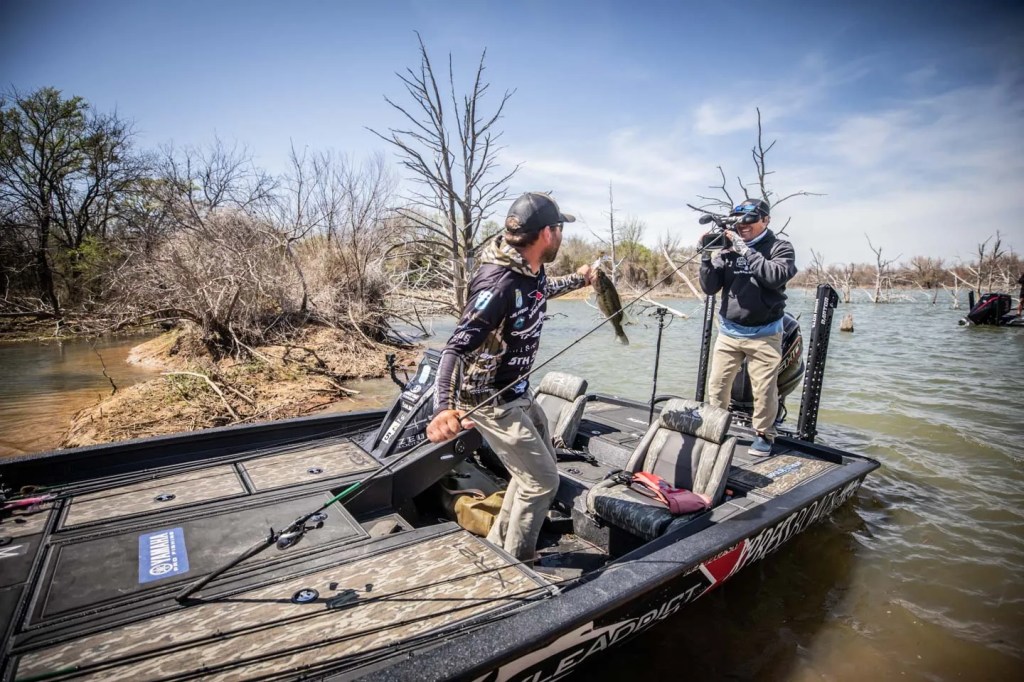 Roughly V-shaped, Lake Ray Roberts has two main branches. Most of the field, including Fothergill, focused on the east arm. As the champ explained, this side’s abundance of timber, channel swings and fish-friendly contours stood preferable to the west side’s flatter, muddier complexion.
