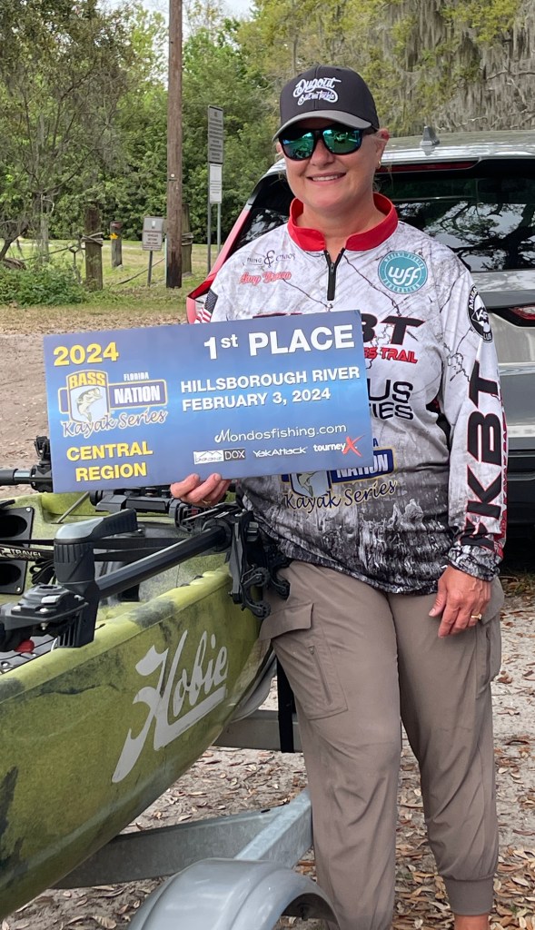 I have only been kayak fishing for two years, competitively for one and a half years, and I feel I have accomplished many milestones in that time. In February, I won my first kayak tournament, leading the entire day and becoming the first female to win a Florida B.A.S.S. Nation Kayak Series event. This past season, I grew significantly, achieving several top 10 finishes, qualifying for the Florida Kayak Bass Trail Championship, and most recently, finishing 4th in the Florida B.A.S.S. Nation Kayak Central Region Angler of the Year standings, which qualified me for the state championship in September.