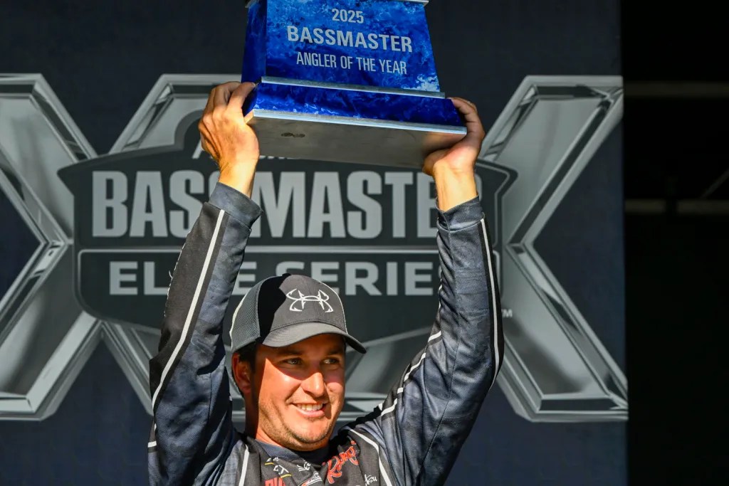“It gets going and I’m leading, and then that final day rolls around and it was one of the most stressful days,” he said. “It’s a stressful day in a regular tournament, let alone add AOY pressure. And then you’re struggling to catch a limit on a place that’s supposed to be full of 2- and 3-pound bass.”