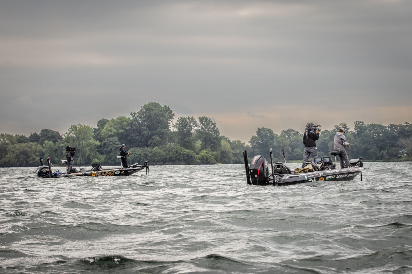 To recap: Gee was camped on a known community hole on the river for the first two days of this week’s tournament while Johnston hadn’t spent substantial time there, catching the bulk of his weight elsewhere. However, it’s a spot Johnston has fished before, and indeed he won an Elite event there in 2020. Today Johnston knew it would’ve been brutal out on Lake Ontario, so he joined the Tennessee rookie there, and things were mostly respectful, but briefly a little chippy. At one point Gee questioned the ethics of the veteran’s decision and Johnston clapped back with his history on the area. After that they cohabited warily but peacefully.