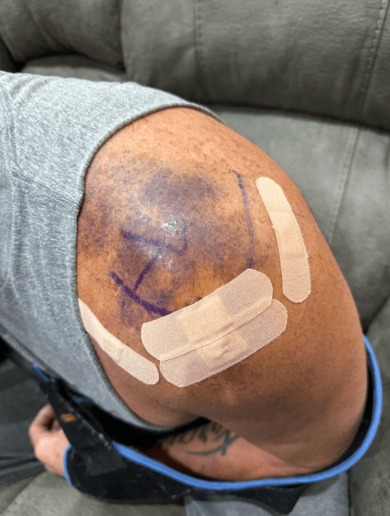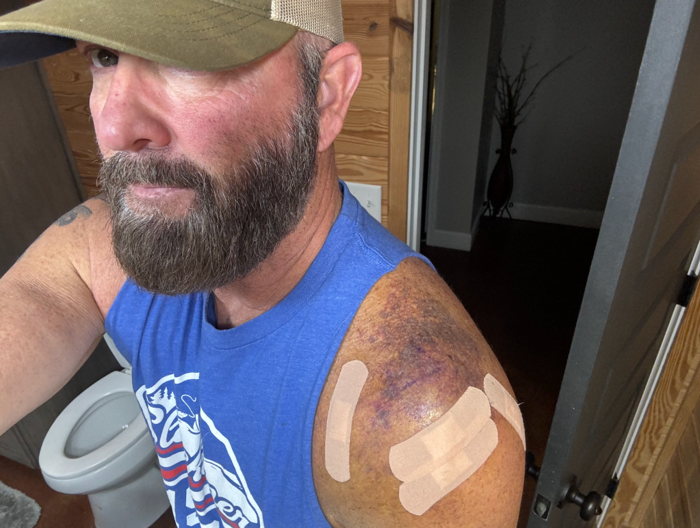 Gerald Swindle: Years of aggressive fishing, climbing tree stands and farm work had worn on Swindle’s shoulders, but changing a 225-pound truck tire en route to the 2024 Northern Swing finished off a cumulative injury. After an MRI, Swindle’s doctor reported a 99.9% torn rotator cuff, a bone spur and a floating bone fragment.