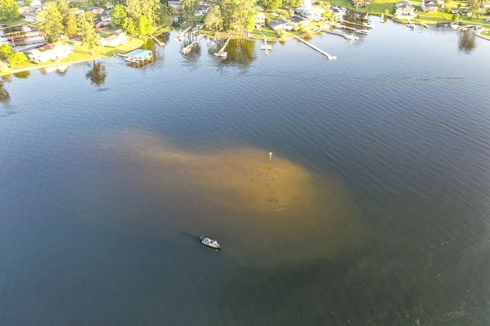 An aerial view of the habitat in play at Lake Murray.
