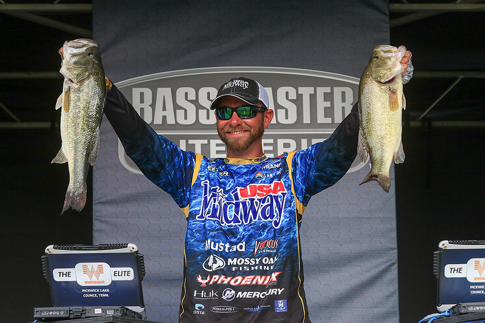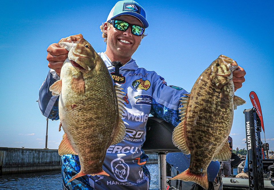 Guaranteed Rate Bassmaster Elite at Lake Oahe, Aug. 18-21. The huge smallmouth fishery wasn’t yielding the 20-plus pound bags reported a year earlier in pre-scouting, but there were big bass. Brandon Cobb was back at it, landing this 5-12 for daily and overall big bass bonuses. Cobb was eighth with 18-13, but he fell to 32nd after a Day 3 limit (5-7) less than his big ’un.