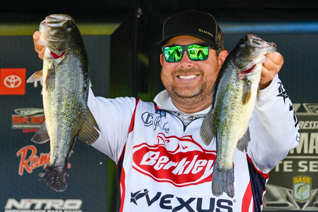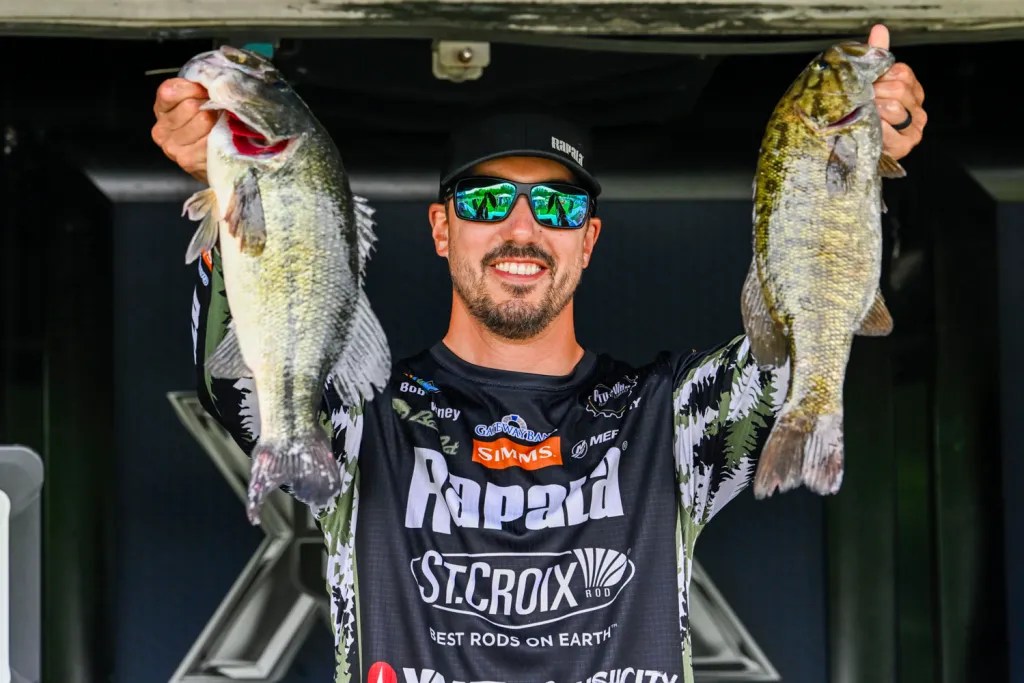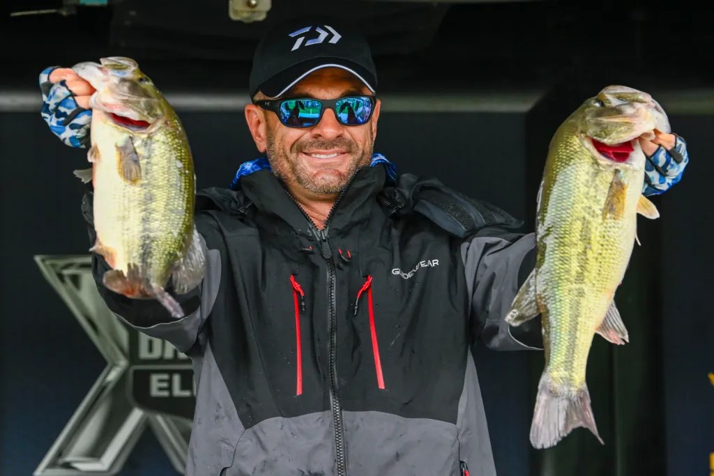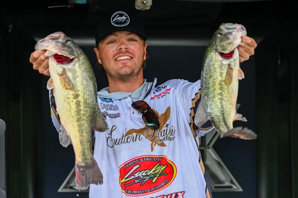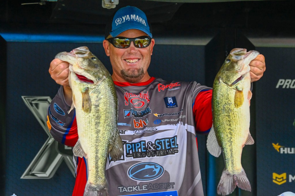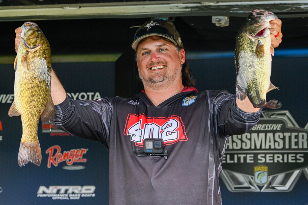 Minnesota’s Bob Downey shows off solid largemouth and smallmouth in his bag of 16-2, the day’s third best. Downey followed with 14-10 and 14-0 to stand fifth going into Championship Sunday, where 11-13 kept him there. In the past two events, Downey has moved up 30 spots to 19th in AOY.