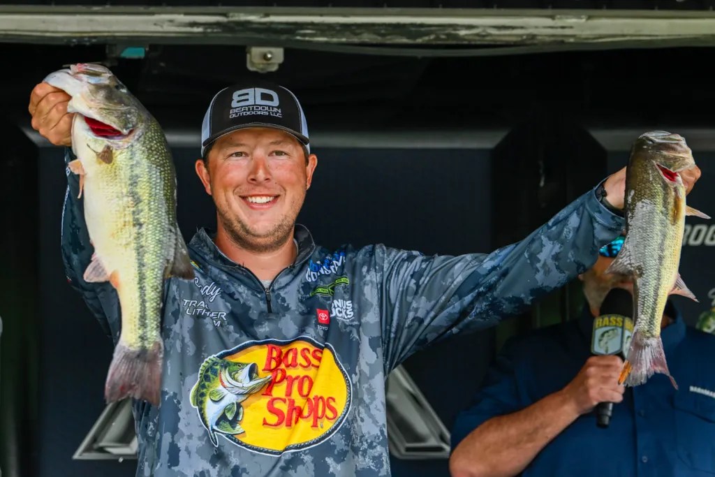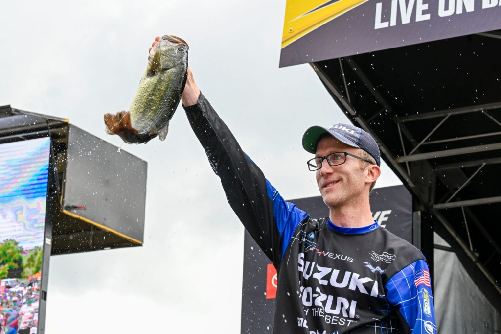 Bryan New had the Phoenix Boats Big Bass of 5-1 to take Day 2’s $1,000 bonus, and it took over the overall lead. It helped the South Carolina pro weigh his best bag of the week, 13-12, and get inside the cut. Finishing 38th, New inched up three spots in AOY to 13th as he vies for his fourth Classic and first since 2023. New earned another $1,000 when his fish tied for best of the week. In 2019 at Tenkiller, the biggest bass was Caleb Sumrall’s 5-7.