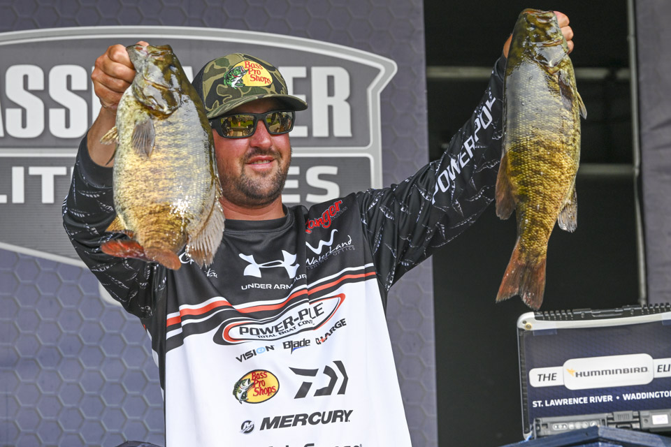 Cory Johnston, who broke through with his first Elite win on the St. Johns River in April, made the long run from Waddington to his spots deep in Lake Ontario. It paid off with 25-0, good for fourth. With a best of 6-2, Cory’s five fish averaged almost a pound better than the day’s 4-1 average. Entering the event seventh in AOY, Cory moved up to fourth, just 19 back of the new leader.