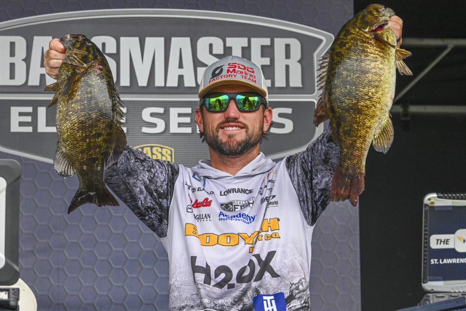 Back out in Lake Ontario, Cory Johnston took care of business with the day’s best 27-7, tying Gee with 52-7 as they led the four on pace for Century Club belts. St. Lawrence yielded the first two 100-pound events with smallmouth in 2022 and four more last year. While Cory excelled, his brother suffered a rough day. As Gee caught 5-pounder after 5-pounder on a community hole where Chris became the first Canadian Elite winner in 2020, Chris was skunked and left. His 16 pounds or so on BassTrakk belied his 20-11 that put him 31st. Four less pounds and Chris would have missed the two-day cut. Chris went into Semifinal Saturday 16 points back of Foutz.