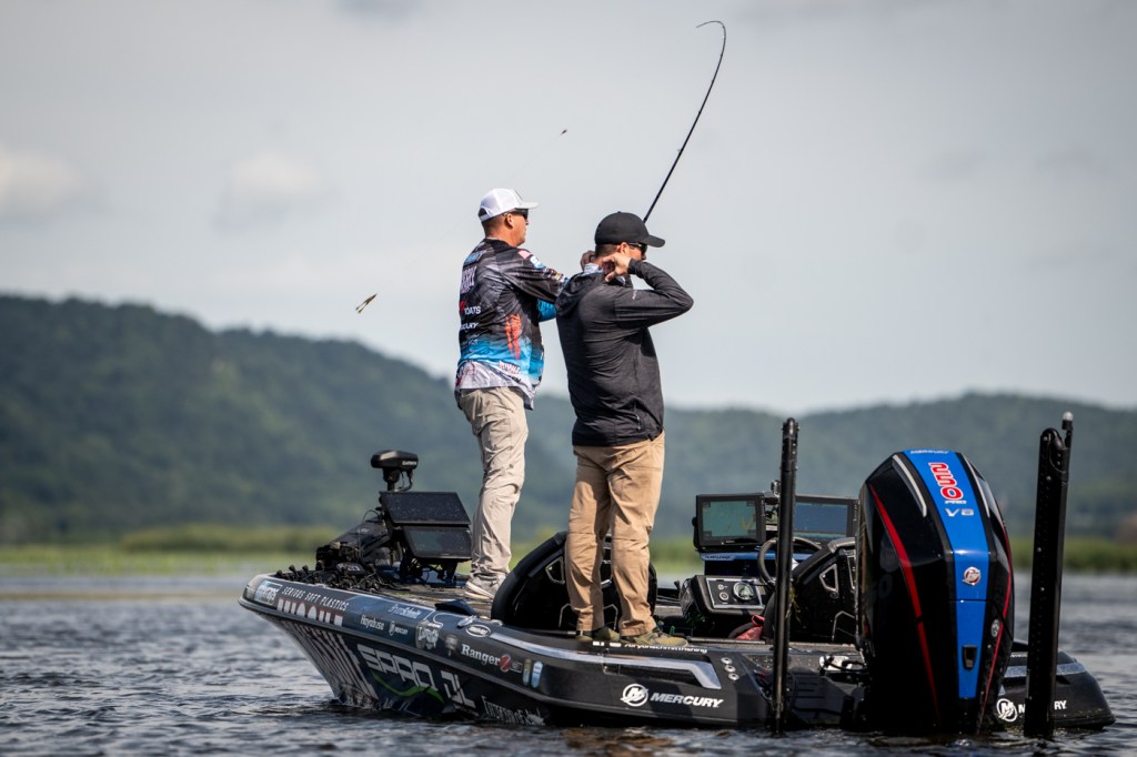 Head out on the water with Bryan Schmitt and JT Thompkins on Day 2 of the 2025 Pro-Guide Batteries Bassmaster Elite at Mississippi River.