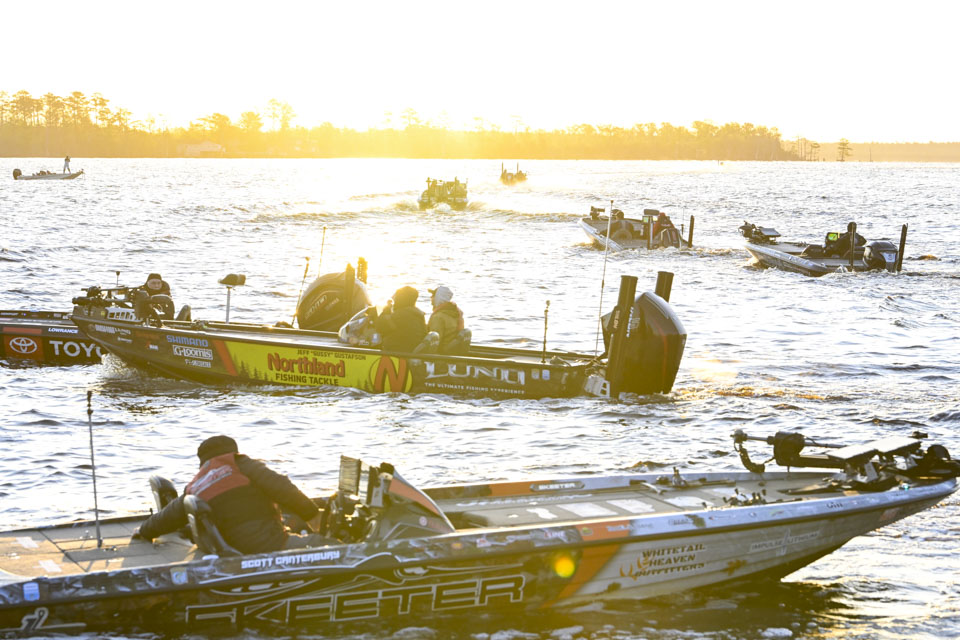 See the Elites get ready and head out to tackle the first day of the 2025 St. Croix Bassmaster Elite at Pasquotank River!