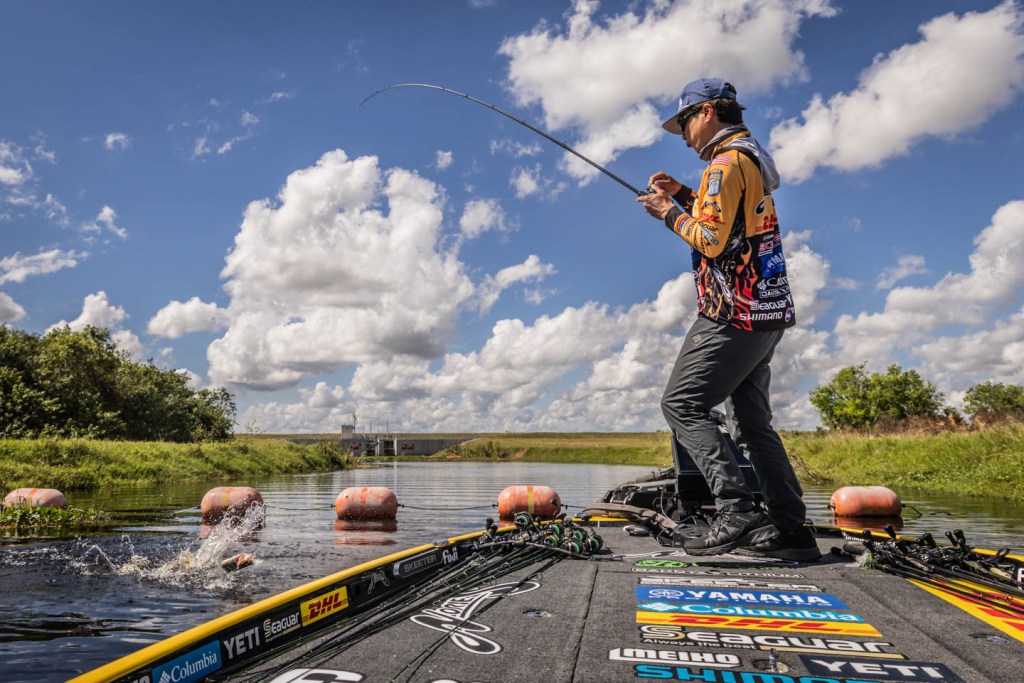 Head out on the water with Bill Lowen and Taku Ito on Day 1 of the Champion Power Equipment Bassmaster Elite at Lake Okeechobee.