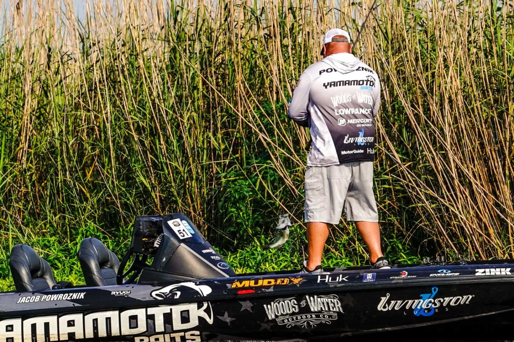 Catch up with Jacob Powroznik early on the second day of the 2023 Folds of Honor Bassmaster Elite at Sabine River!
