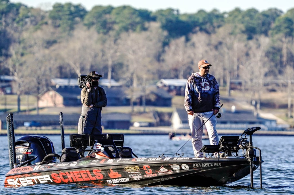See the sights from on the water as Pat Schlapper and Luke Palmer battle it out on Day 2 of the Gamakatsu Bassmaster Elite at Toledo Bend.