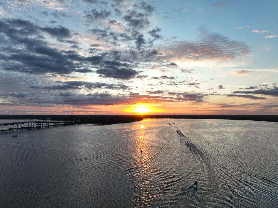 Take a flyover of the takeoff on a sunny Florida morning over the St. Johns River.