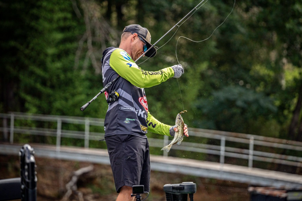 See Day 1 leader Hunter Shryock get to work Day 2 at the 2024 TNT Fireworks Bassmaster Elite at Smith Lake!