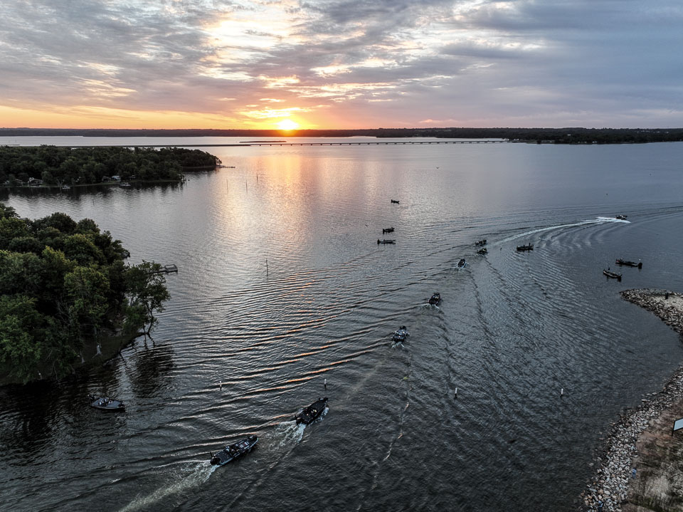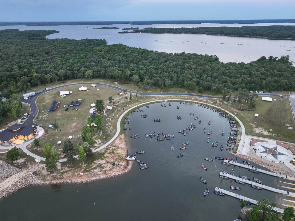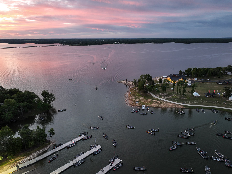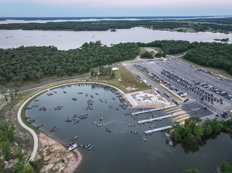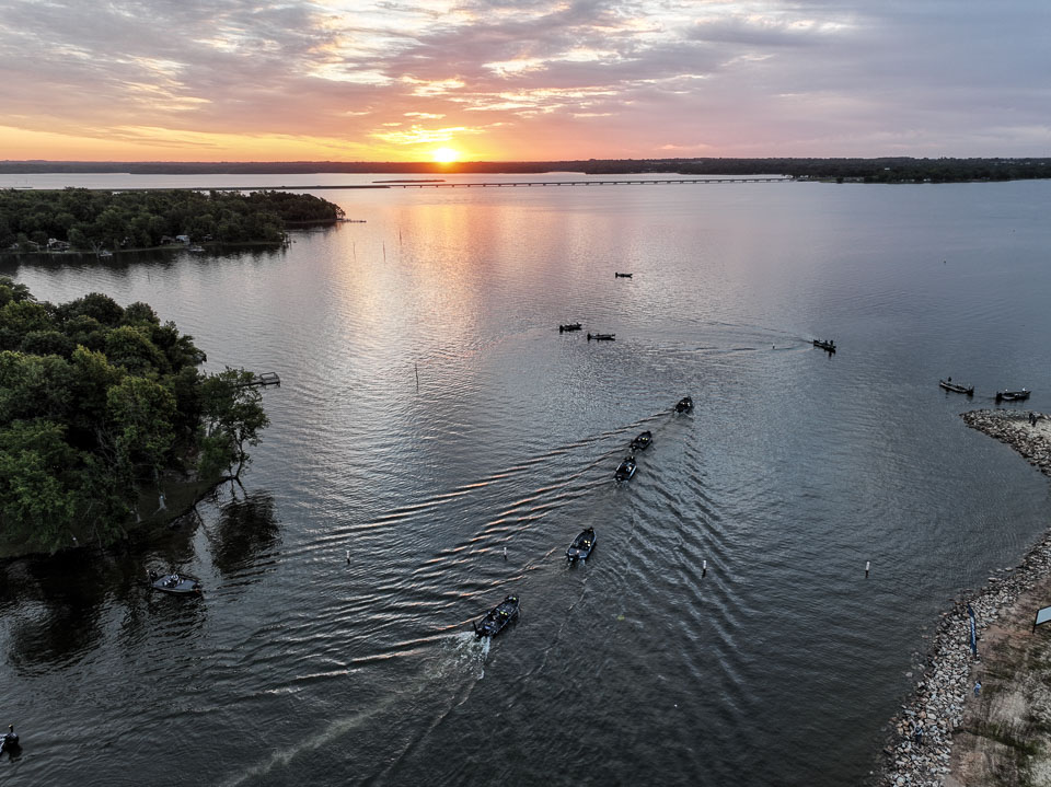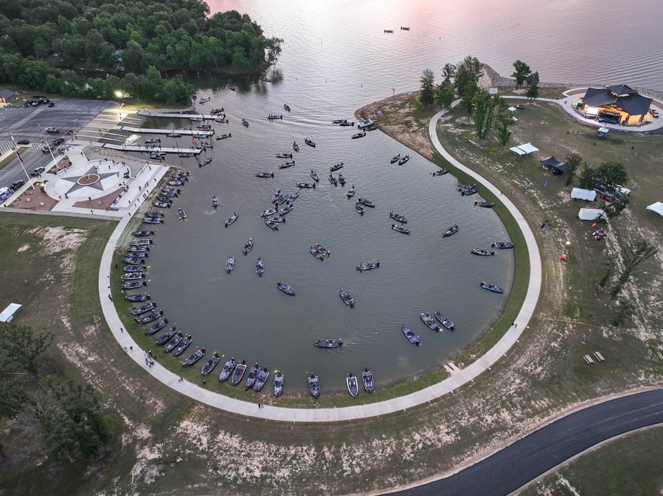 See the boats lining up for takeoff on Lake Fork.