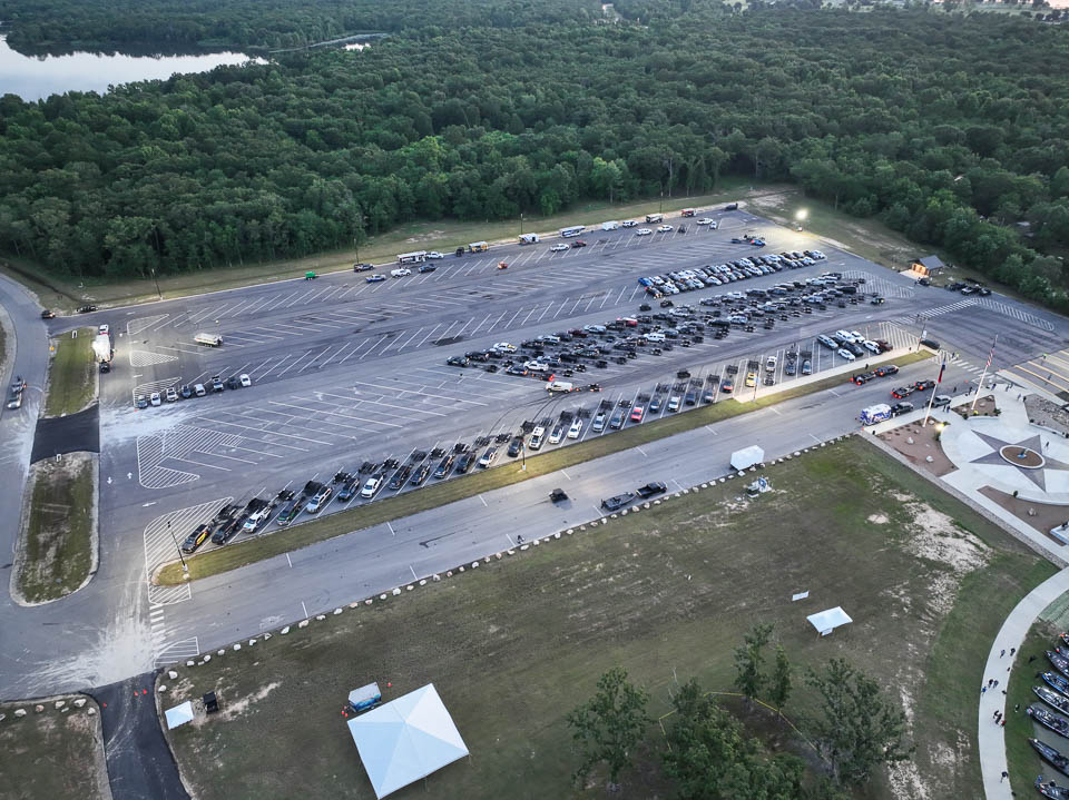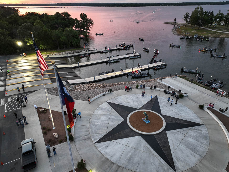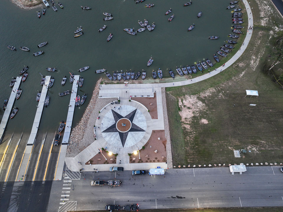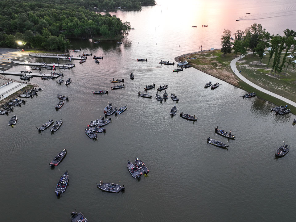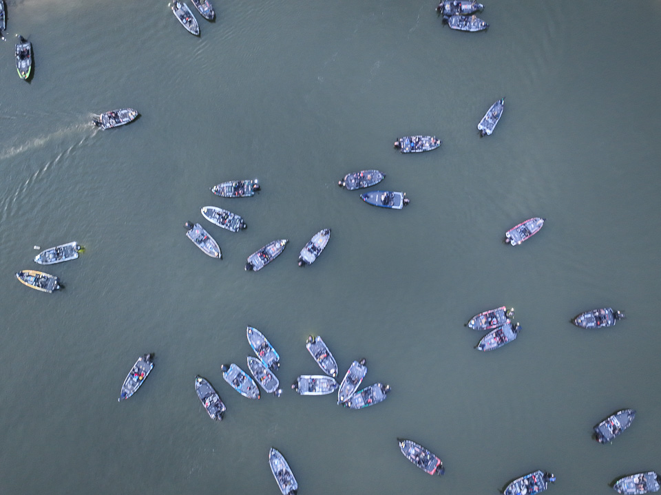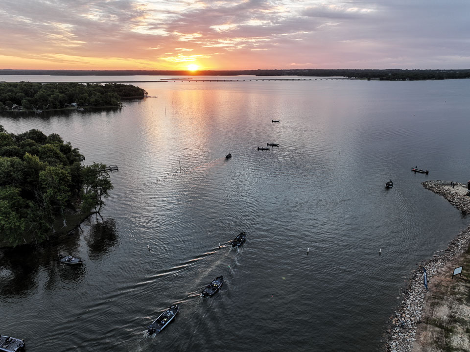 See the boats lining up for takeoff on Lake Fork.