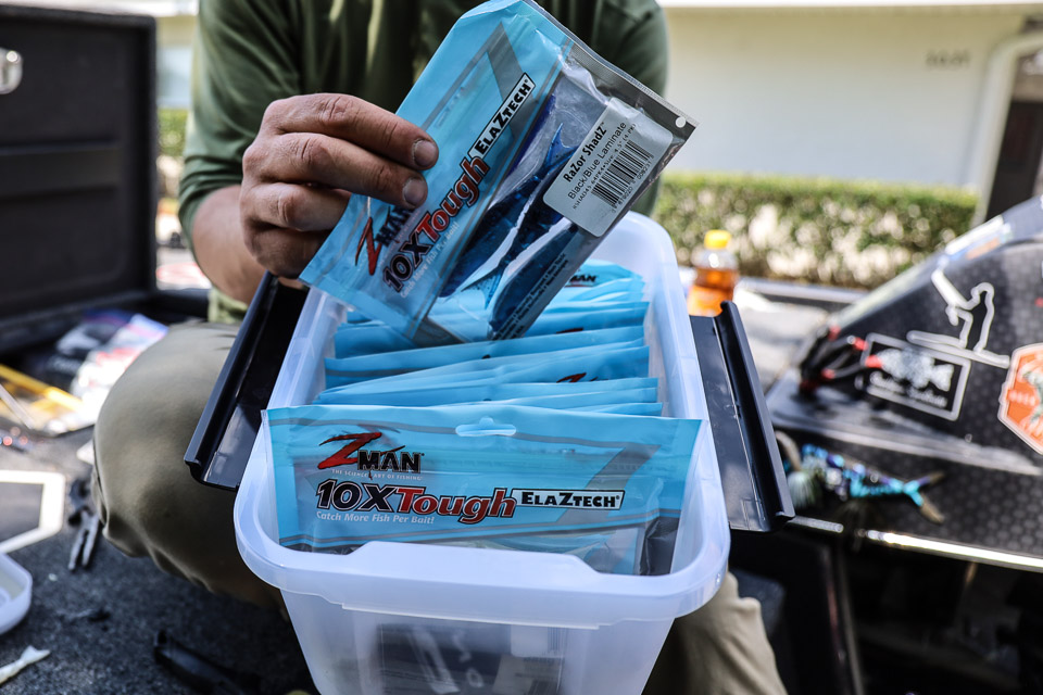 Feider’s three must-haves for Florida are the Z-Man RaZor ShadZ, Z-Man Hella CrawZ and the Z-Man Bang StickZ.