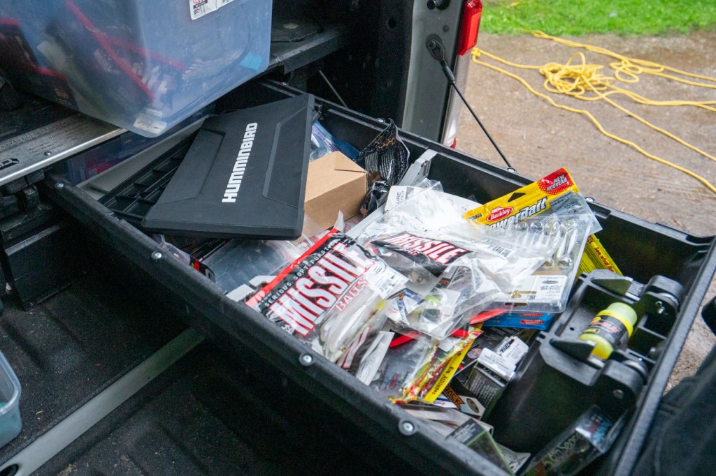 Like many Elite Series Pros, Patrick keeps his truck loaded down with equipment and tackle. His Decked drawer system helps keep him organized.