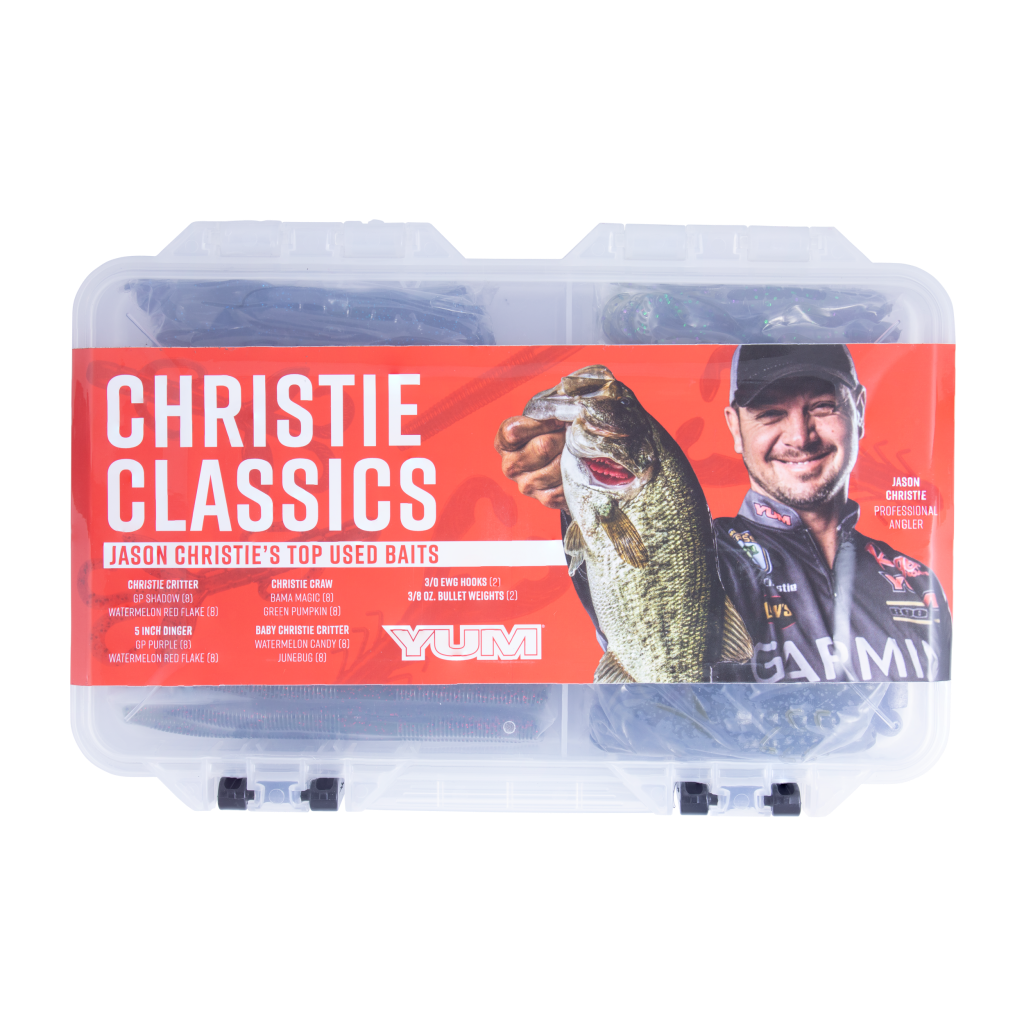 In some cases, such as YUM’s Christie Classics bait kit, professional anglers like Bassmaster Elite Jason Christie have a hand in selecting the items. Playing off Christie’s 2022 Bassmaster Classic title, this particular kit includes YUM Dingers (stick worms), along with the pro-designed Christie Critter, Baby Christie Critter, Christie Craw and the appropriate tackle.