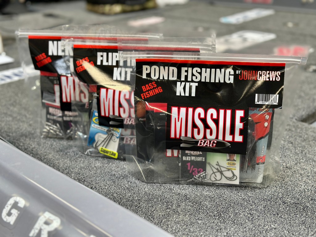Elsewhere, Missile Baits offers several technique-specific kits curated by founder and Elite veteran John Crews, along with fellow Elites Ed Loughran, Bryan Schmitt, and Caleb Sumrall. Complimenting these tournament-level technique kits, Crews also assembled a beginner-friendly Pond Fishing Kit. (https://missilebaits.store/products/kit)