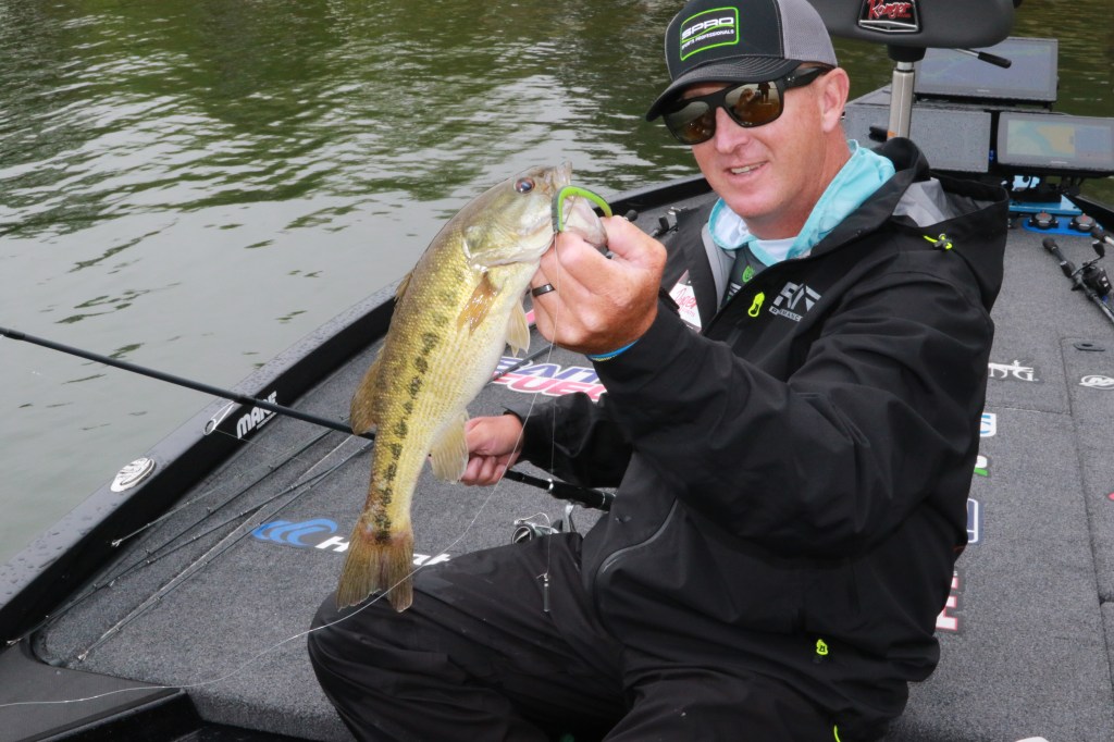 Schmitt’s Elite-level dock arsenal is understandably complex, but one of his personal favorites — the wacky rig — offers a highly effective option that’s easy to learn and fish. In its simplest form, the wacky rig comprises a soft plastic stick worm with a short shank finesse hook set through the center.
