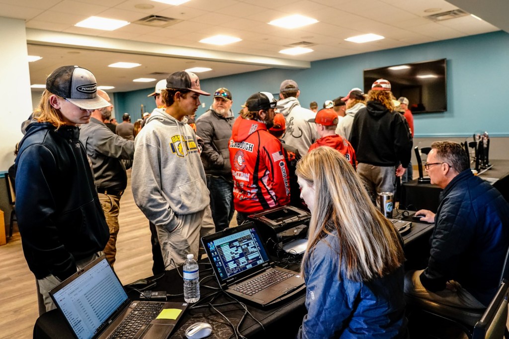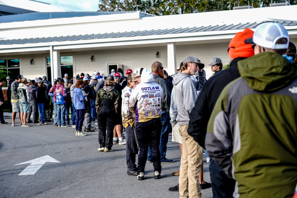 High School anglers gather at registration for the Strike King Bassmaster High School Series at the Harris Chain of Lakes presented by Academy Sports + Outdoors!