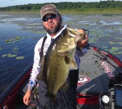 Brandon Card used a Spro frog on 65-pound test SpiderWire Ultracast braid fish on a 7-foot, 6-inch Abu Garcia heavy action Veracity rod. He punched the mats with a creature bait on a 1-1/2-ounce tungsten weight with a 7-foot, 11-inch heavy action Veritas rod.