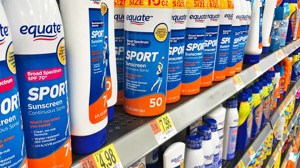 Although La Roche-Posay’s Anthesios 60 Melt-In Sunscreen Milk rated well, its $36 price for 5 ounces puts it off my shopping list. Walmart’s Equate Sport Lotion SPF 50 was right alongside the fancy stuff but cost only $5.