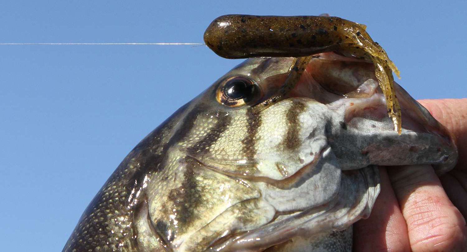 Now, getting back to the slender design, Pipkens employs a 3/16- to 1/4-ounce tube head around shallower grass. He’ll judge his size based on wind levels, but the basic deal here is the slower, more vulnerable presentation.