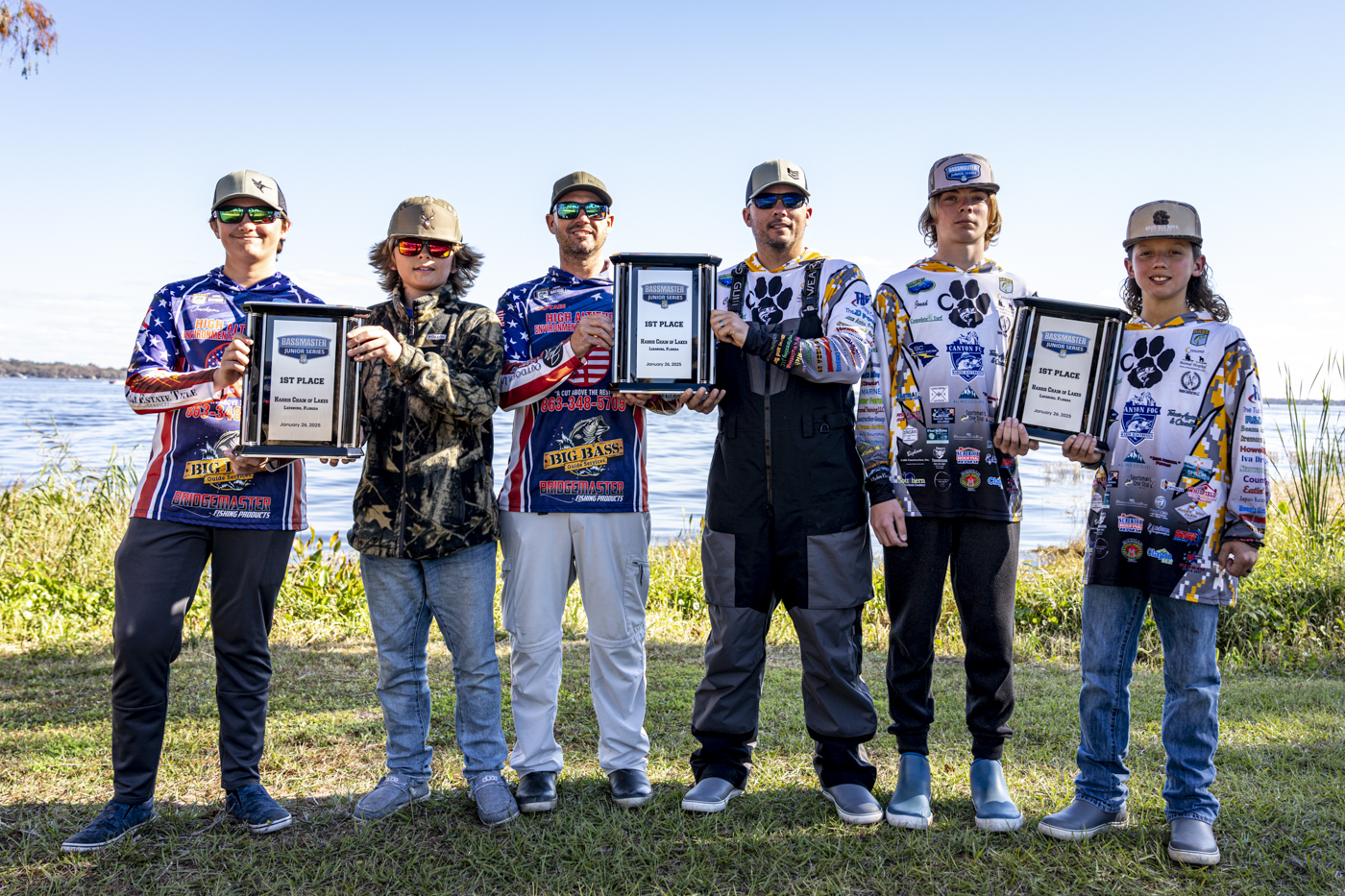 Kaysen Smith and Jonah Osment from Crescent High School and Fisher Arnold and Jackson Caudill from Lakeland Junior Hawg Hunters tie at the 2025 Bassmaster Junior Series at Harris Chain with 10 pounds, 15 ounces.