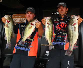 LITTLE ROCK, Ark. — Oklahoma State's Zack Birge and Blake Flurry needed only two hours on the Arkansas River Wednesday to practically assure themselves a spot in Friday's Top 5 Final of the Carhartt Bassmaster College National Championship.