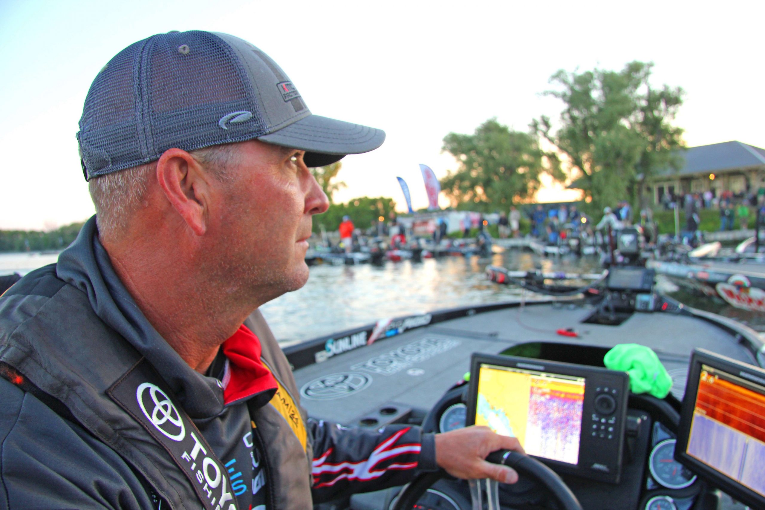 Swindle says his new position in the catbird seat won’t change his approach on the water. “Greg’s disqualification won’t change what I do one bit. I gotta take care of Gerald. My goal is to catch 19 pounds today, and I feel like I have to catch at least 17 pounds just to assure I get paid here.”