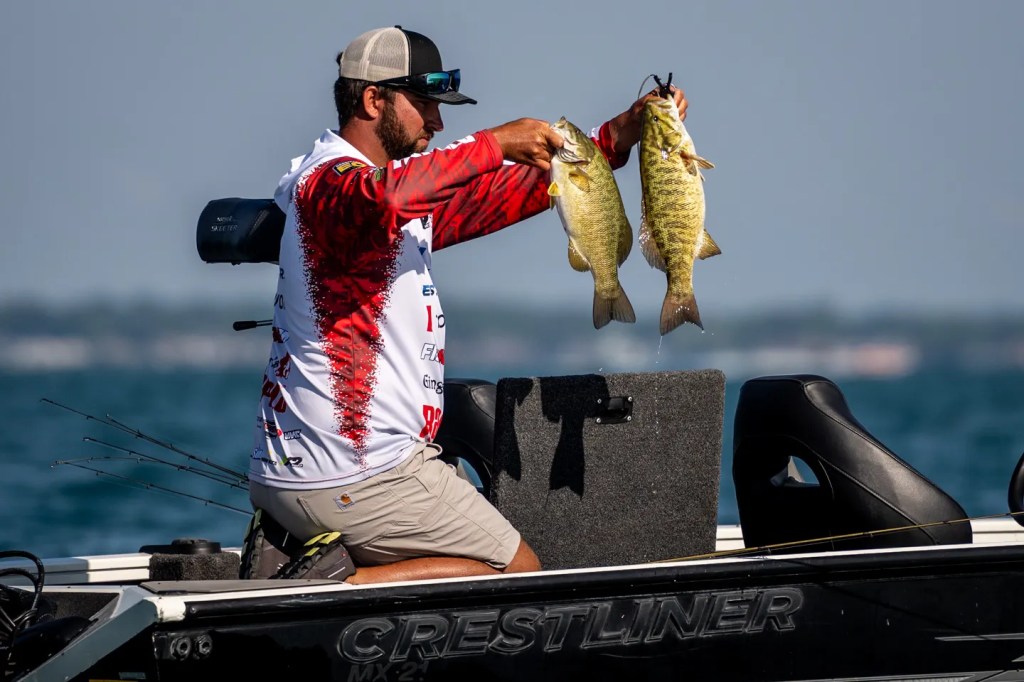 MACOMB COUNTY, Mich. — How’s this for a dream day of smallmouth fishing? You catch 40 smallmouth weighing over four pounds, including a trio of five pounders, most all of them in the same area. The five biggest weigh 27 pounds, 12 ounces. And you do all that damage in a morning of fishing.