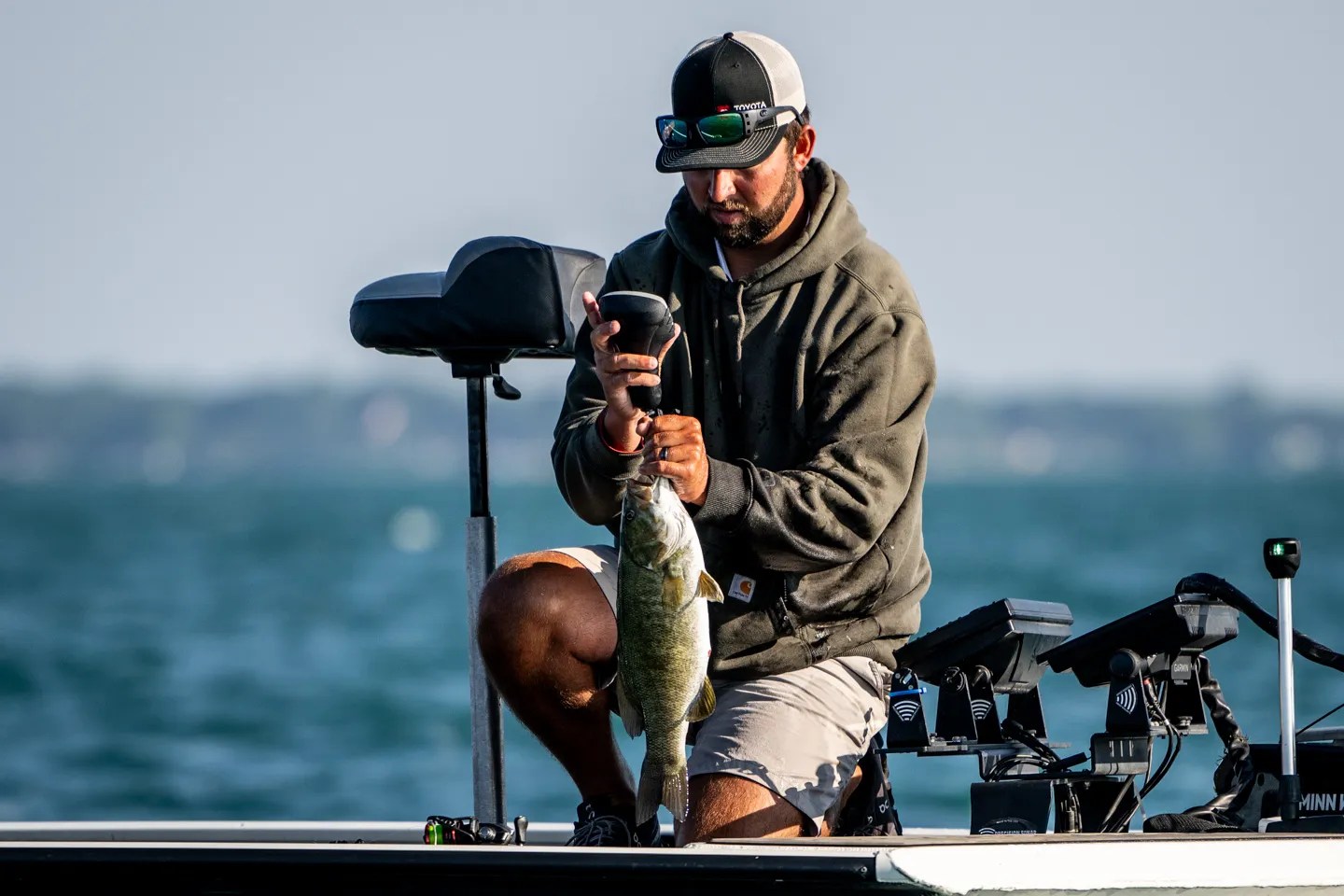 A key to his success was the ability to hunt and pick out individual smallmouth visible on the screen of his forward-facing sonar. McKinney intentionally searched for the biggest bass in his area, choosing to ignore any fish in three-pound range.