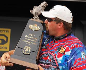 Images of Nate Wellman fishing toward victory on Day Three of the Bass Pro Shops Northern Open on Lake Erie.
