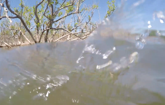 Here’s a quick above- and below-surface look at the buck brush that Chris Zaldain has been fishing on Bull Shoals the past two days.